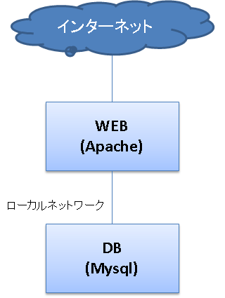 WebとDBを分離することで、負荷を分散することができ、一台構成からのスケールアウトとして 一番簡単な構成です。